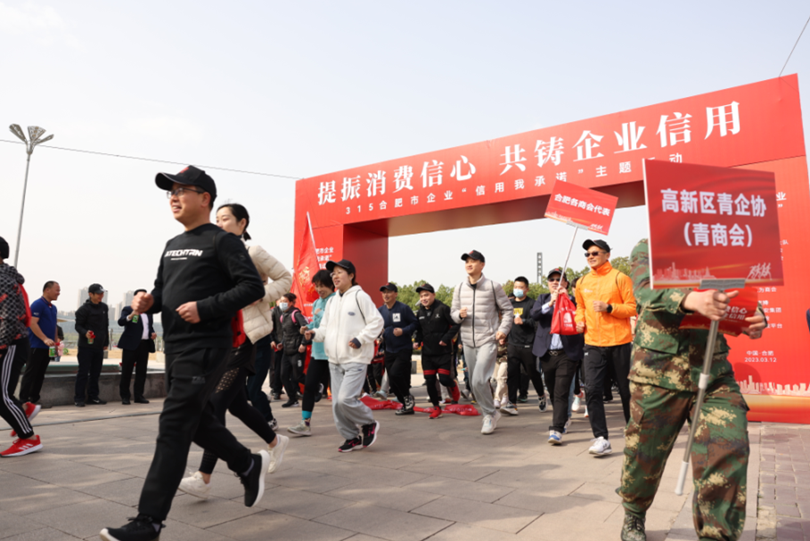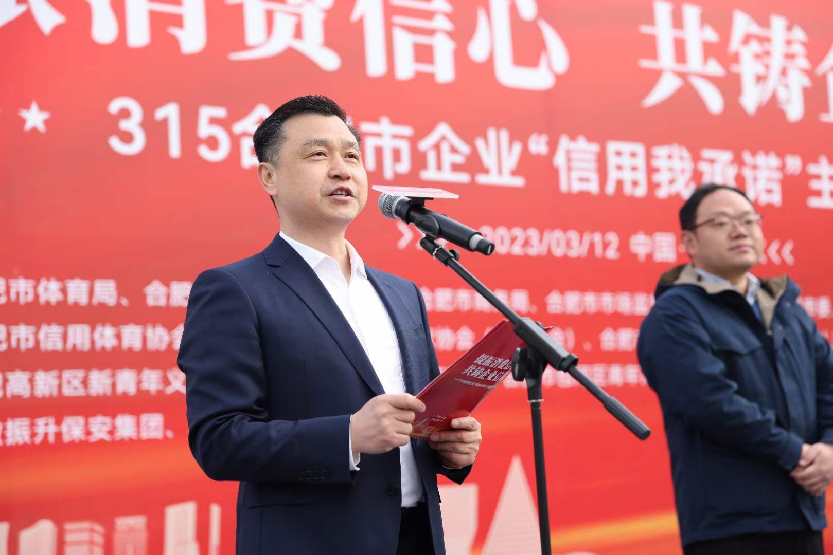 2023年3月12日上午,300多名合肥市各行业企业家自发来到市民广场,并代表企业向社会做出“信用”承诺。据悉,今年的3·15企业“信用我承诺”主题活动,由合肥市体育局、合肥市发展和改革委员会、合肥市商务局、合肥市市场监督管理局、共青团合肥市委员会、合肥市消费者权益保护委员会联合主办,合肥市信用体育协会、合肥高新区青年企业家协会(青年商会)、合肥市体育产业协会、合肥市铁人三项运动协会共同承办,合肥市各商协会积极参与,并围绕2023年消费维权年主题“提振消费信心”落地展开。合肥市发展和改革委员会二级调研员施平、合肥市消费者权益保护委员会秘书长丁云分别致辞,合肥高新区青年企业家协会(青年商会)会长窦开宏代表参与企业宣读了“企业信用公约”,合肥市体育局党组成员、副局长陆志勇主持活动仪式。