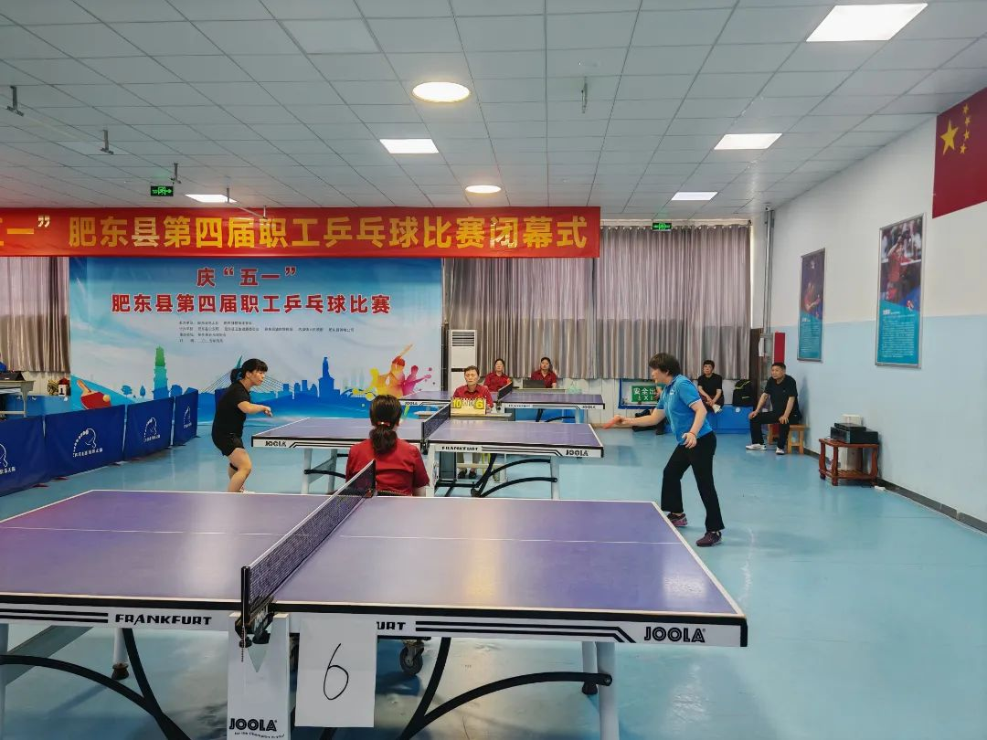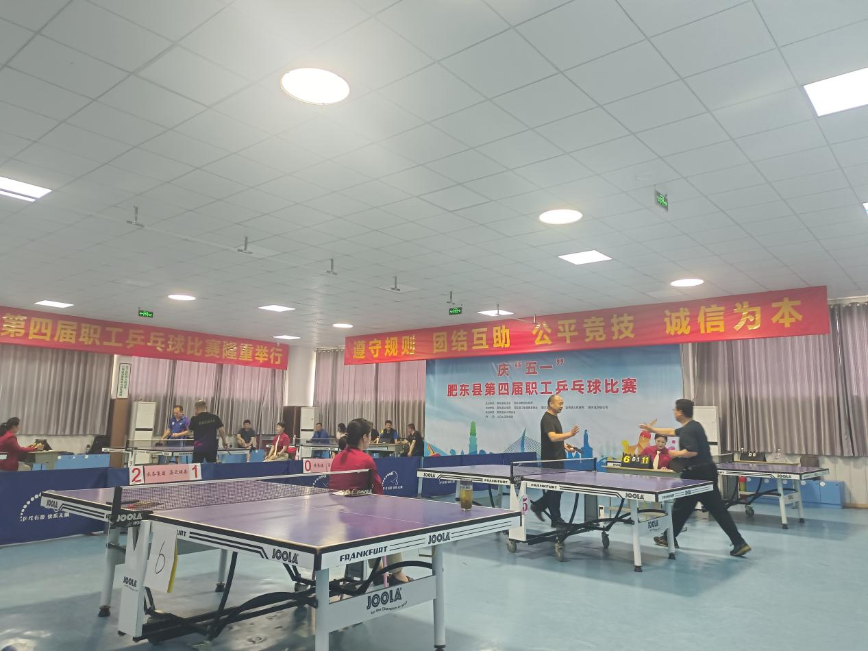 为热烈庆祝中华全国总工会成立100周年,丰富我县广大职工的业余文化生活,近日,由肥东县总工会、肥东县教体局主办的庆“五一”肥东县第四届职工乒乓球比赛在合肥东一乒乓球俱乐部圆满落幕。