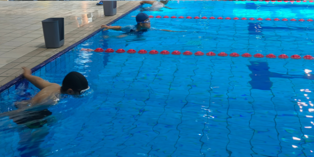比赛现场,选手们以娴熟的泳姿奋力前行,手臂划水有力,双腿蹬水迅速,在泳池中留下了一道道优美的弧线。自由泳选手们风驰电掣,用速度与激情演绎着水上“飞人”;蛙泳选手们则节奏稳健,动作标准,展现出扎实的基本功。