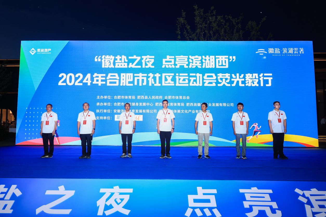 7月30日晚7点,2024年合肥市社区运动会荧光毅行在徽盐滨湖云著项目部璀璨启幕,近900名企事业单位代表、毅行爱好者及居民热情参与。合肥市体育局党组成员、副局长吴昌均,合肥市体育局群体处处长汪贻政,肥西县教体局党委书记、局长徐润青,肥西县县政府督学王军,合肥市全民健身中心支部书记音邦俊,安徽盐业地产集团副总经理王君,肥西县徽盐置业发展有限公司总经理李猛相关领导莅临开幕式,共同见证这一盛事。
