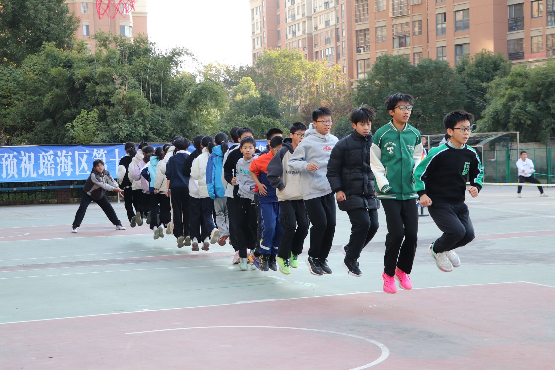 11月30日,由瑶海区教育体育局主办、合肥市郎溪路小学协办的瑶海区第十九届中小学生暨教职工跳绳比赛在郎溪路小学拉开帷幕。比赛现场,体育馆内人声鼎沸,气氛热烈。