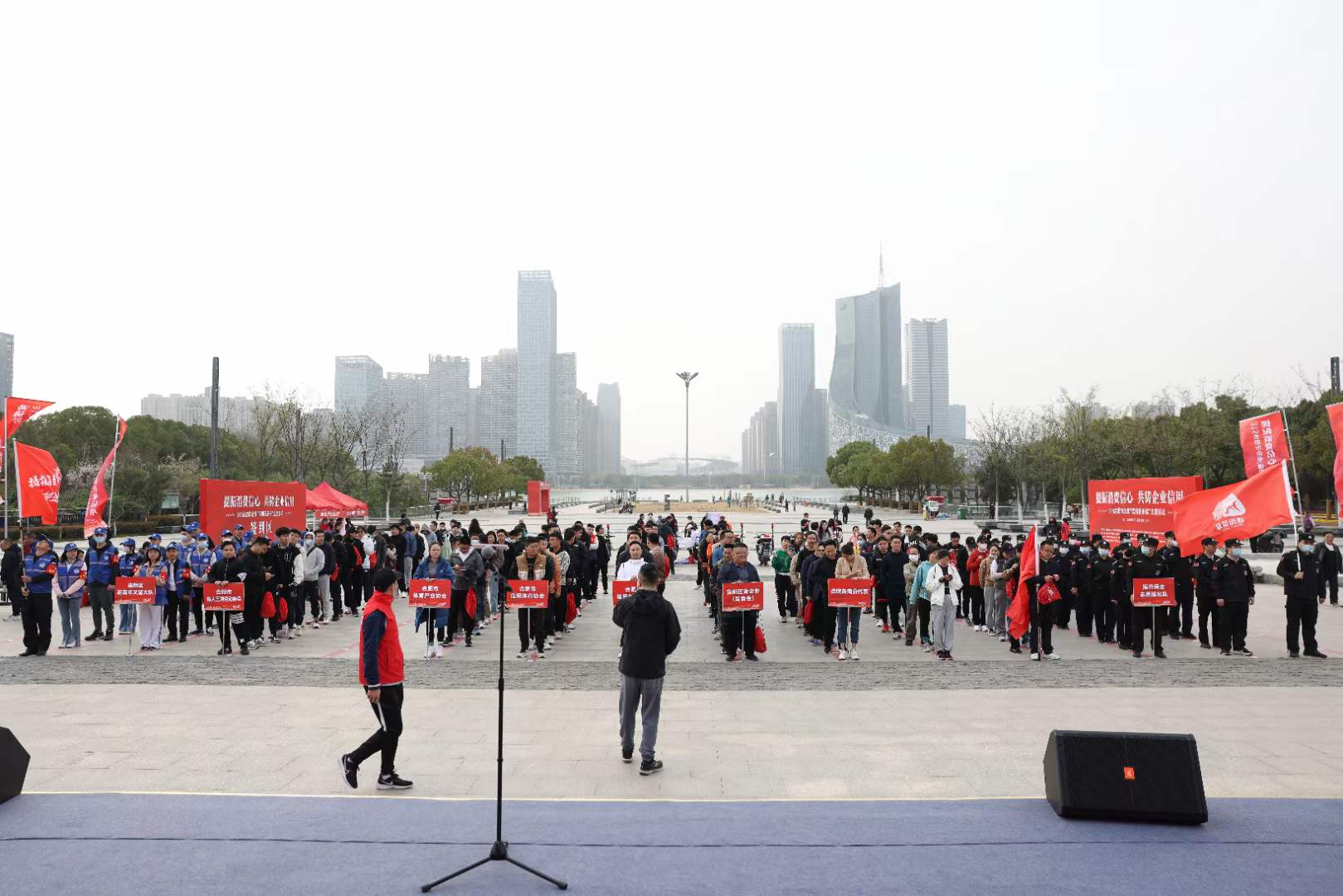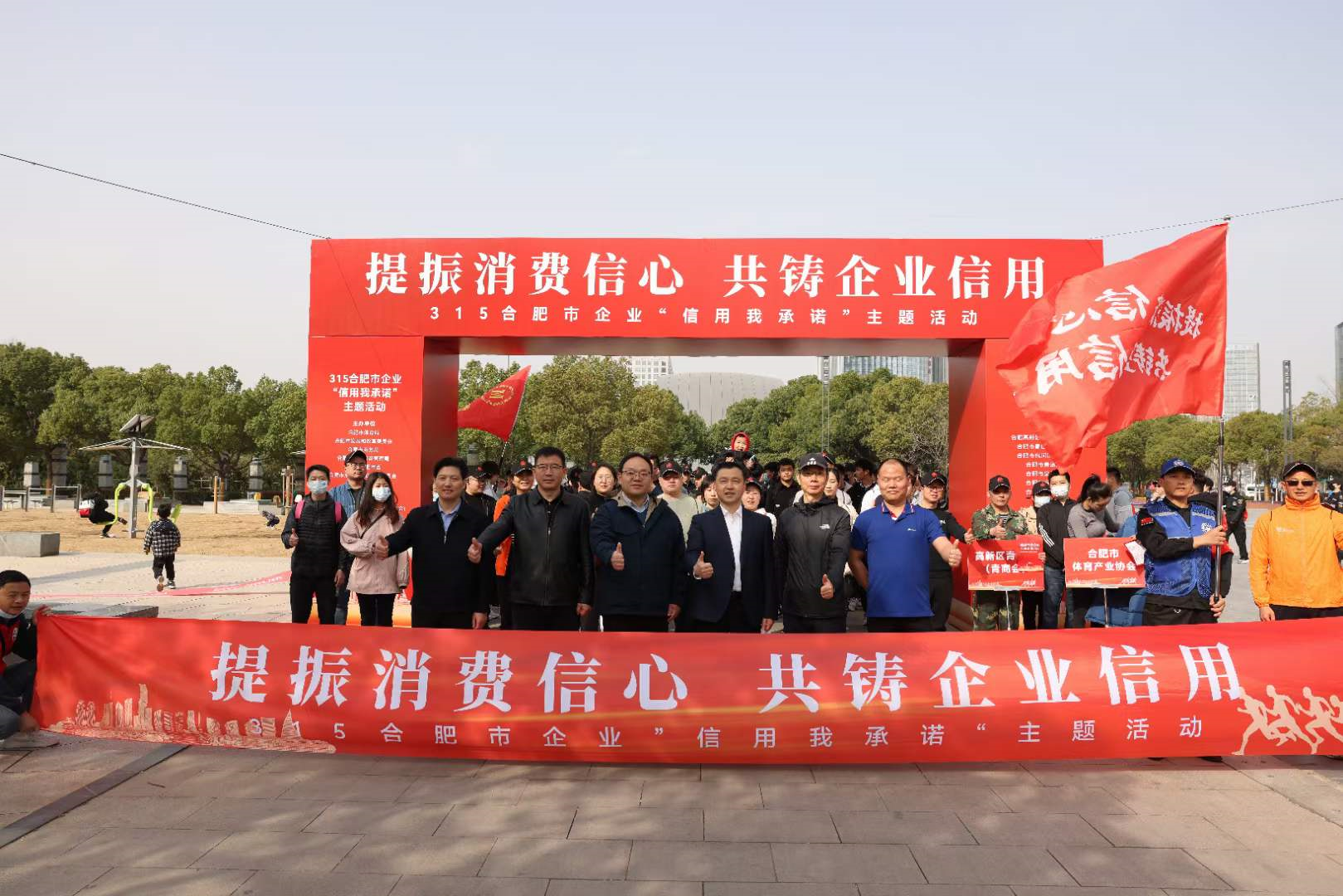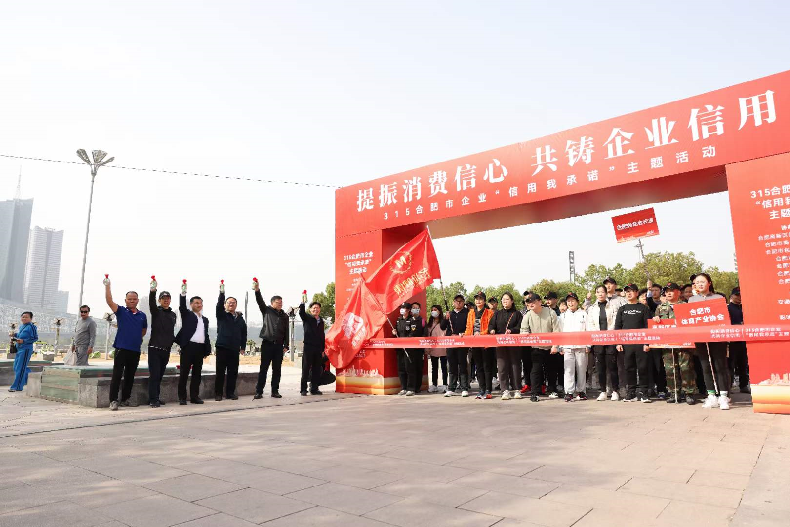 2023年3月12日上午,300多名合肥市各行业企业家自发来到市民广场,并代表企业向社会做出“信用”承诺。据悉,今年的3·15企业“信用我承诺”主题活动,由合肥市体育局、合肥市发展和改革委员会、合肥市商务局、合肥市市场监督管理局、共青团合肥市委员会、合肥市消费者权益保护委员会联合主办,合肥市信用体育协会、合肥高新区青年企业家协会(青年商会)、合肥市体育产业协会、合肥市铁人三项运动协会共同承办,合肥市各商协会积极参与,并围绕2023年消费维权年主题“提振消费信心”落地展开。合肥市发展和改革委员会二级调研员施平、合肥市消费者权益保护委员会秘书长丁云分别致辞,合肥高新区青年企业家协会(青年商会)会长窦开宏代表参与企业宣读了“企业信用公约”,合肥市体育局党组成员、副局长陆志勇主持活动仪式。