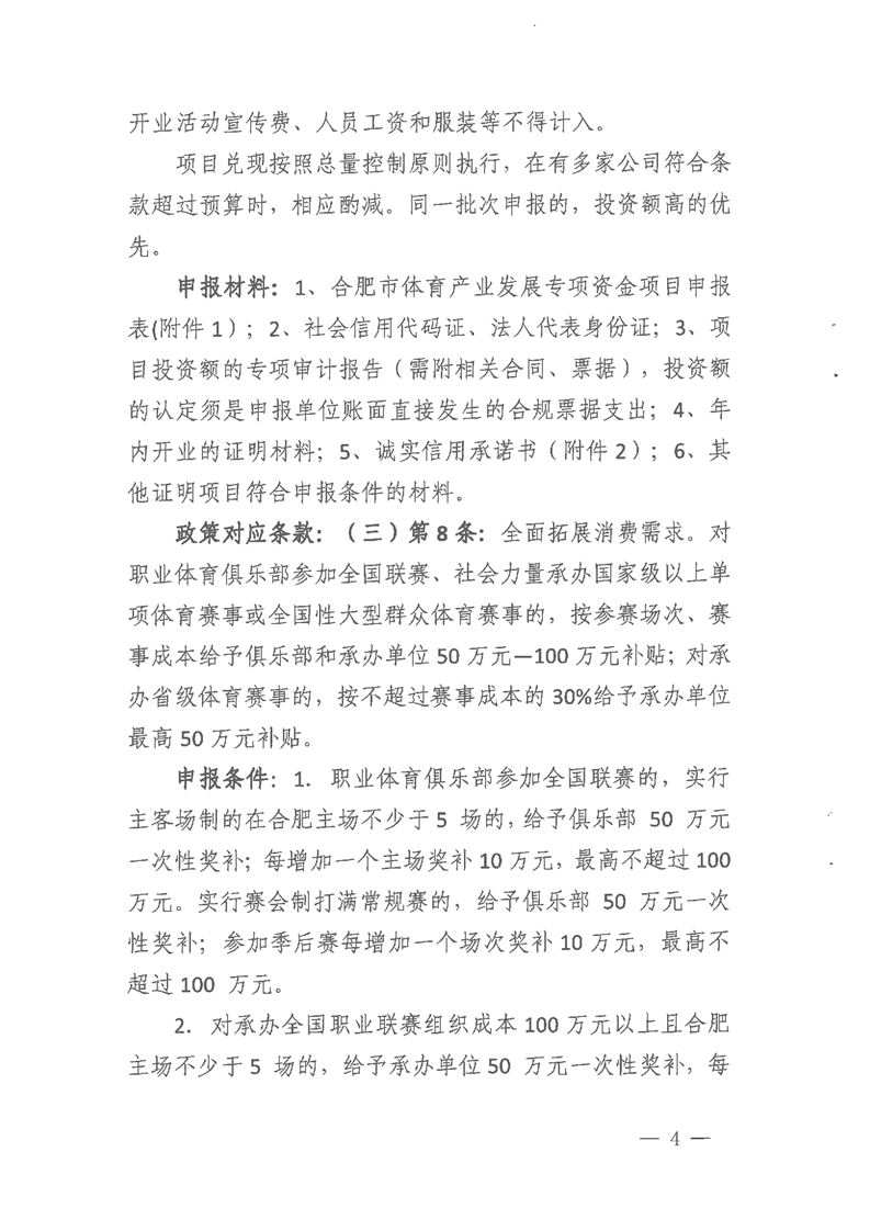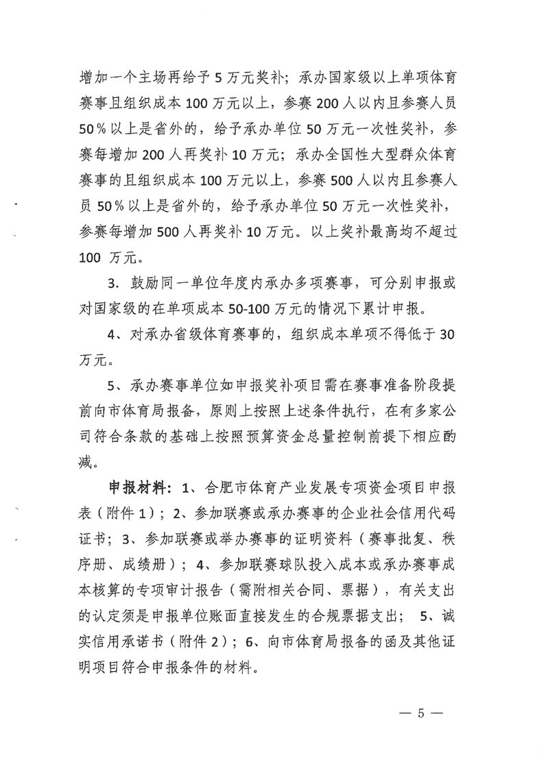 2023年合肥市促进经济发展若干政策实施细则(体育部分)