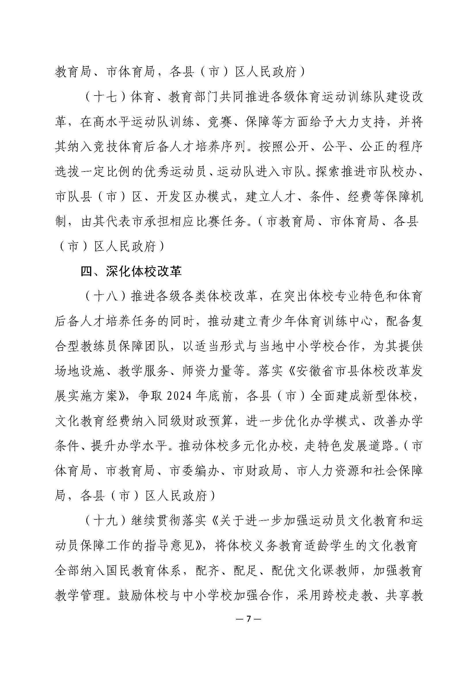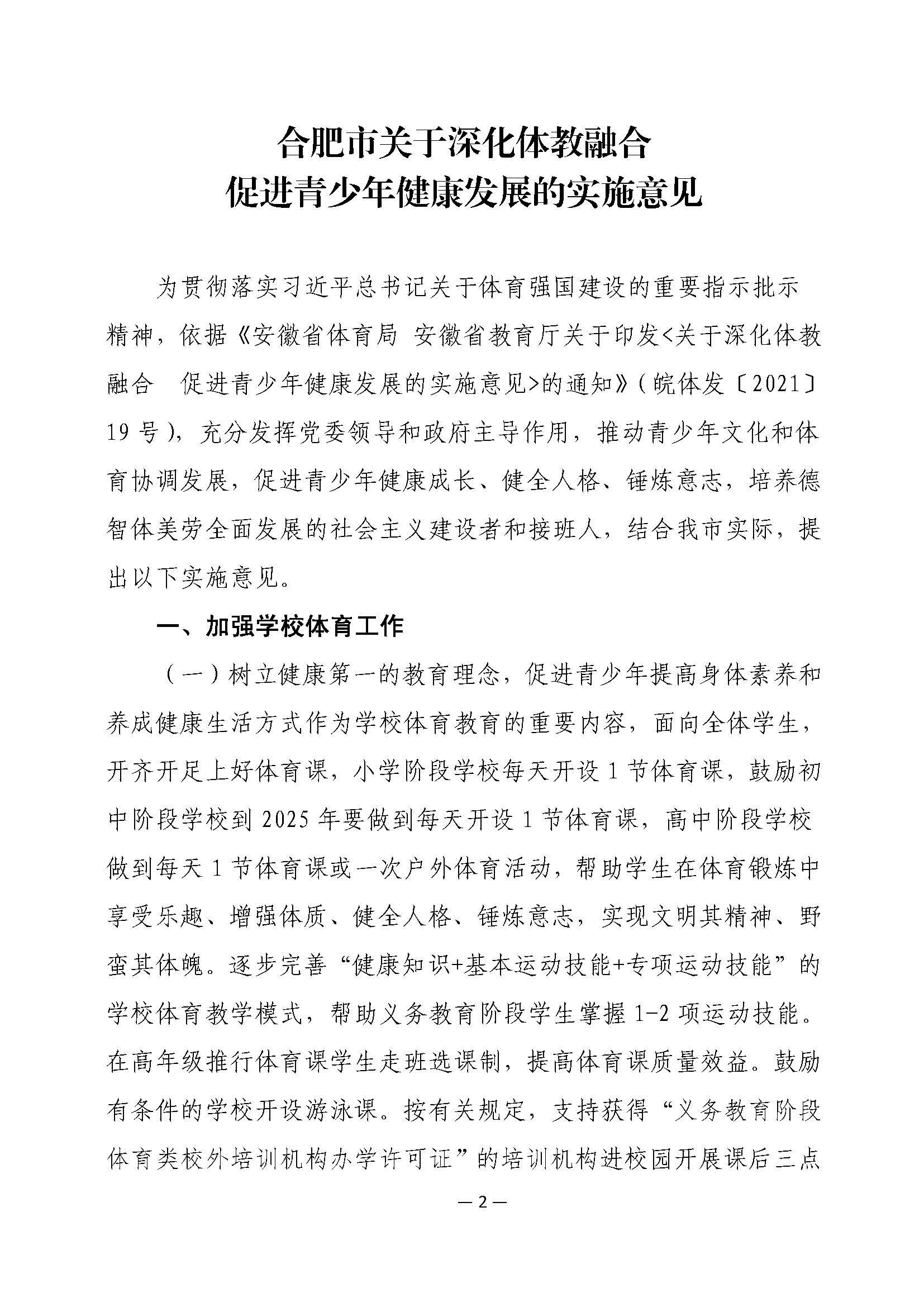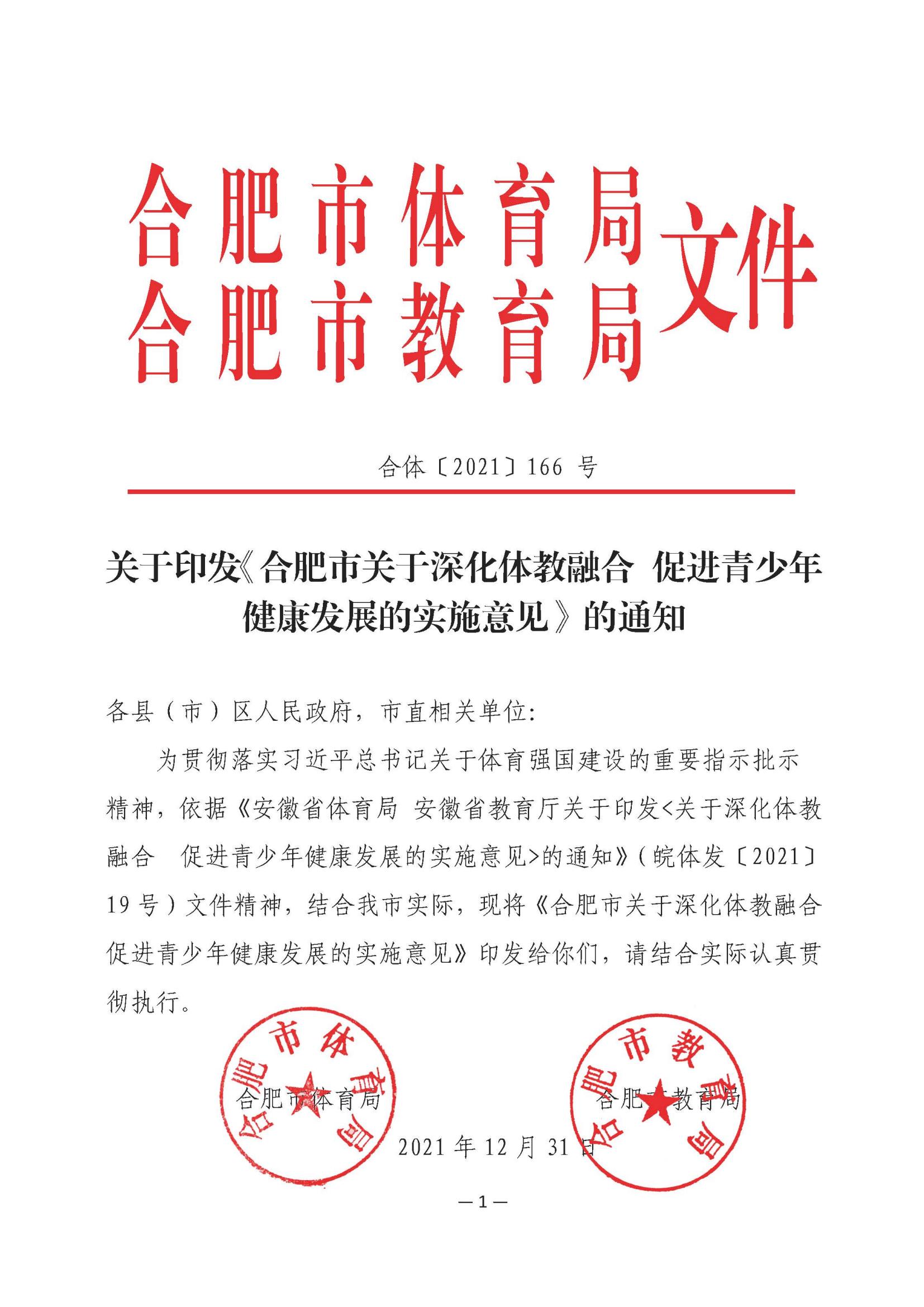 关于印发《合肥市关于深化体教融合 促进青少年健康发展的实施意见》的通知