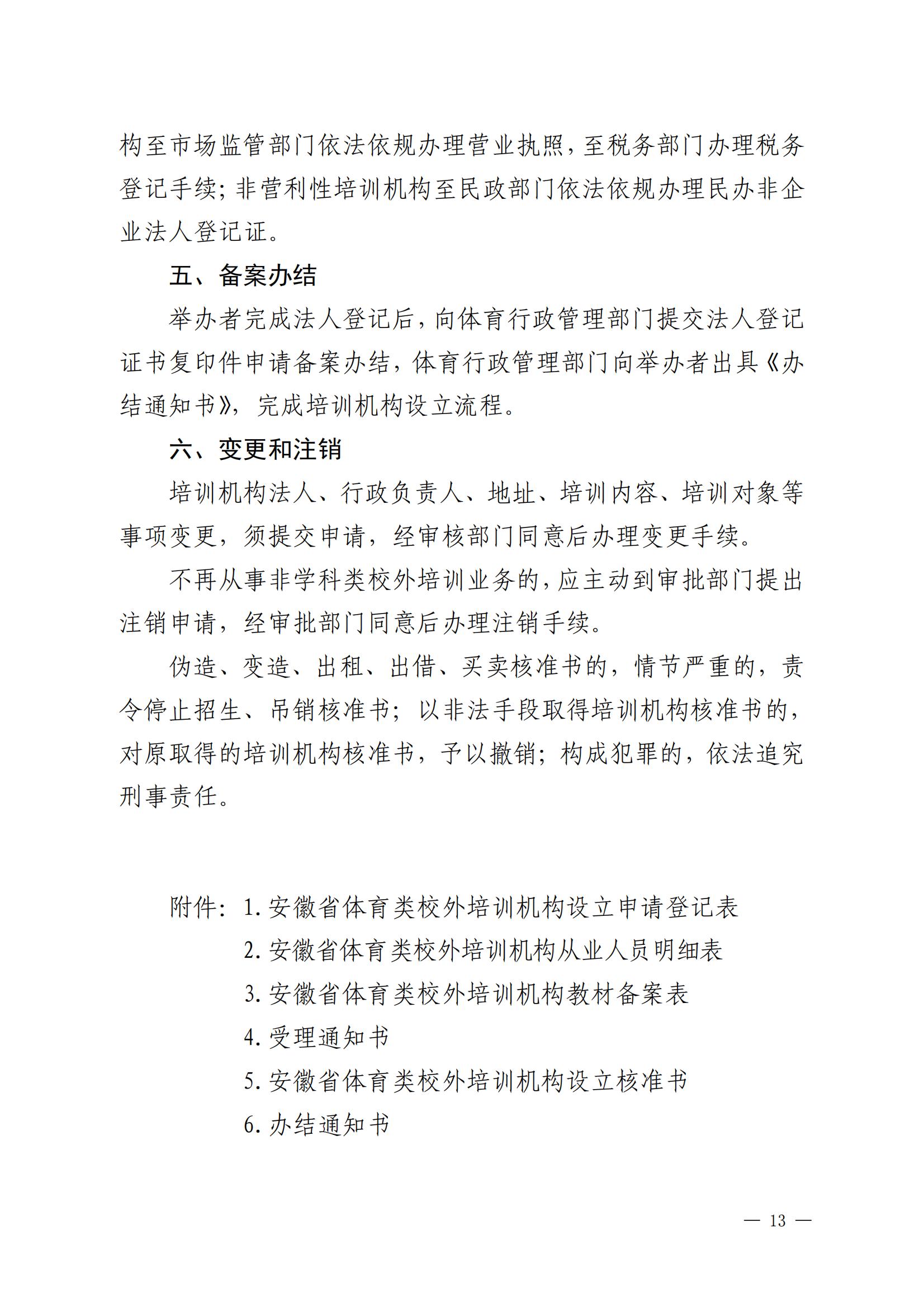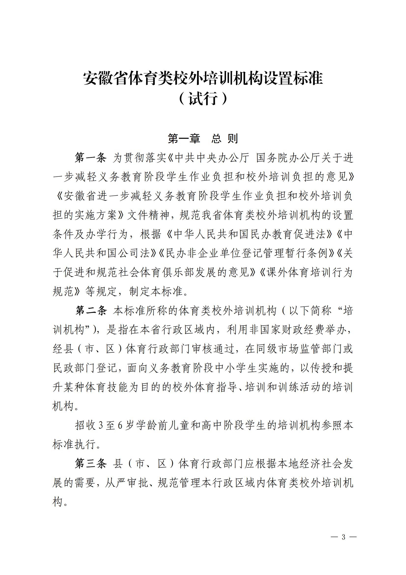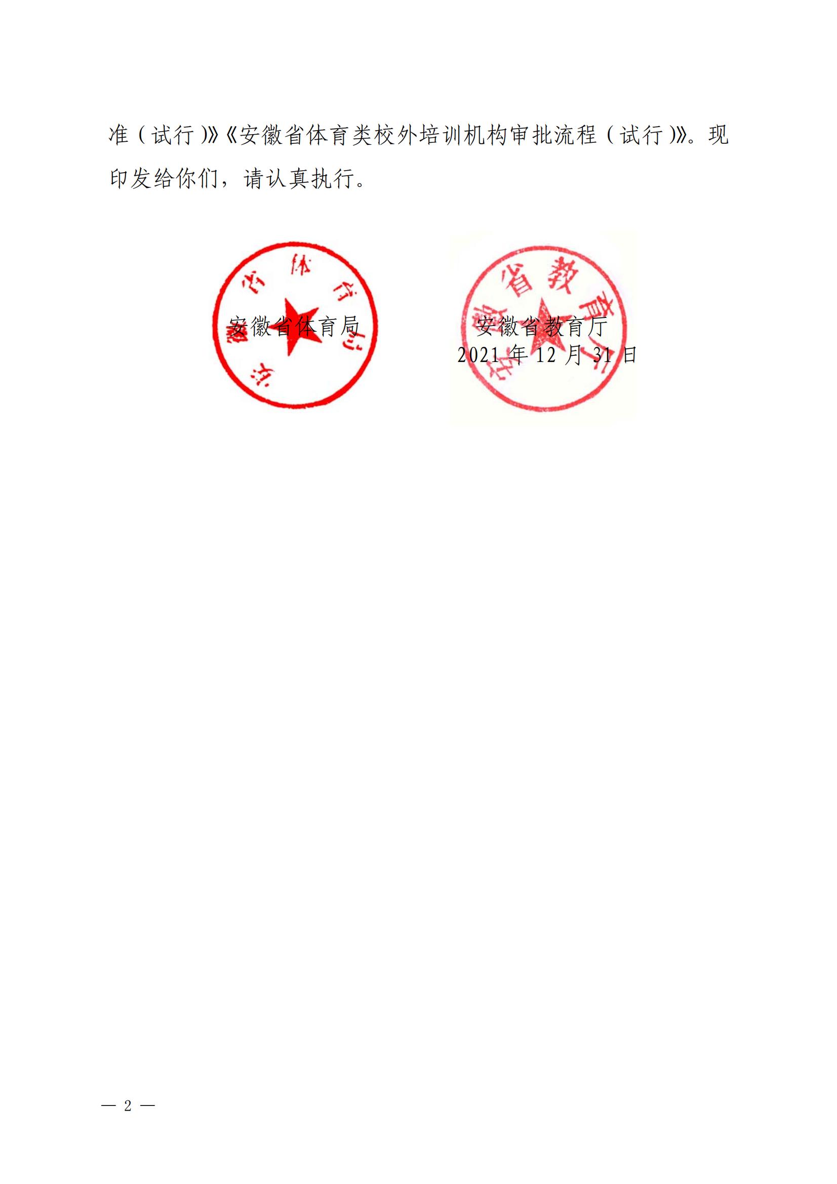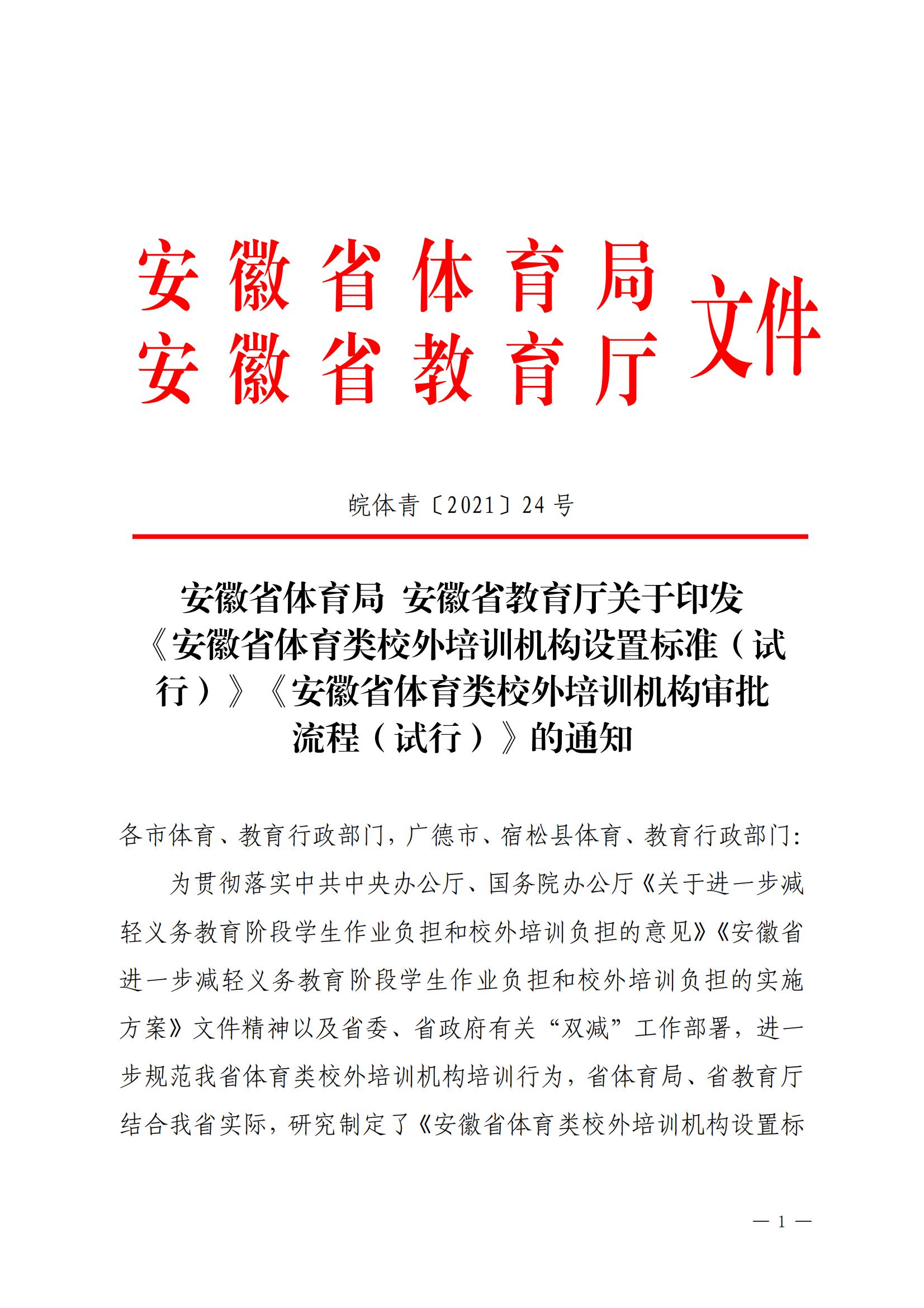关于印发 《安徽省体育类校外培训机构设置标准(试 行)》《安徽省体育类校外培训机构审批 流程(试行)》的通知
