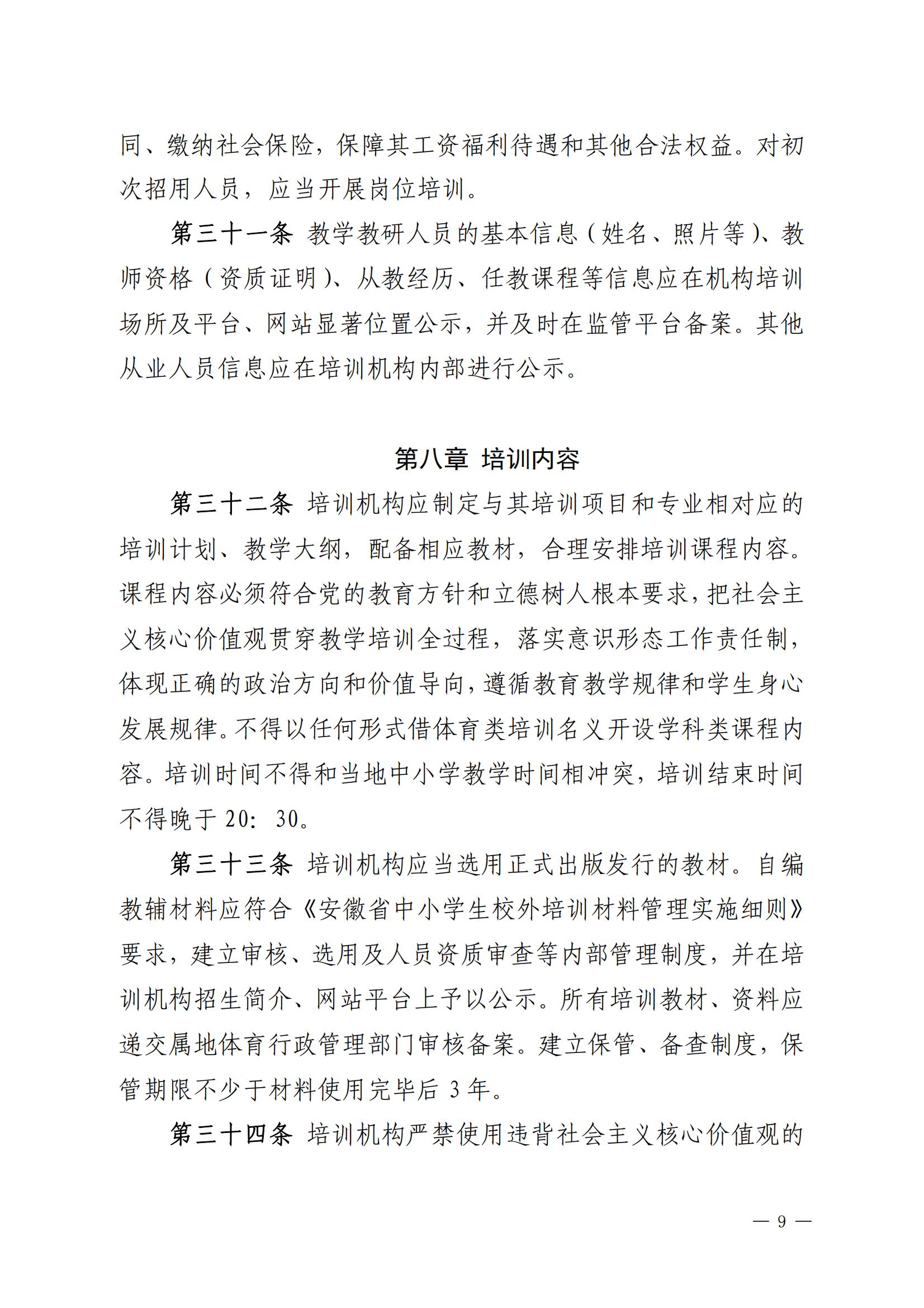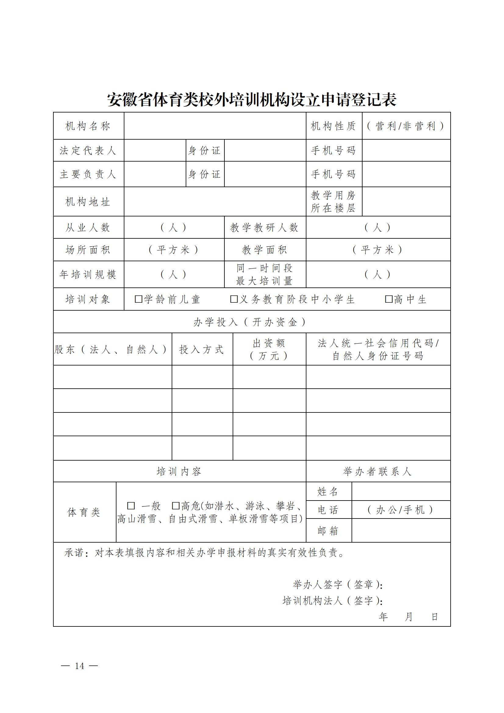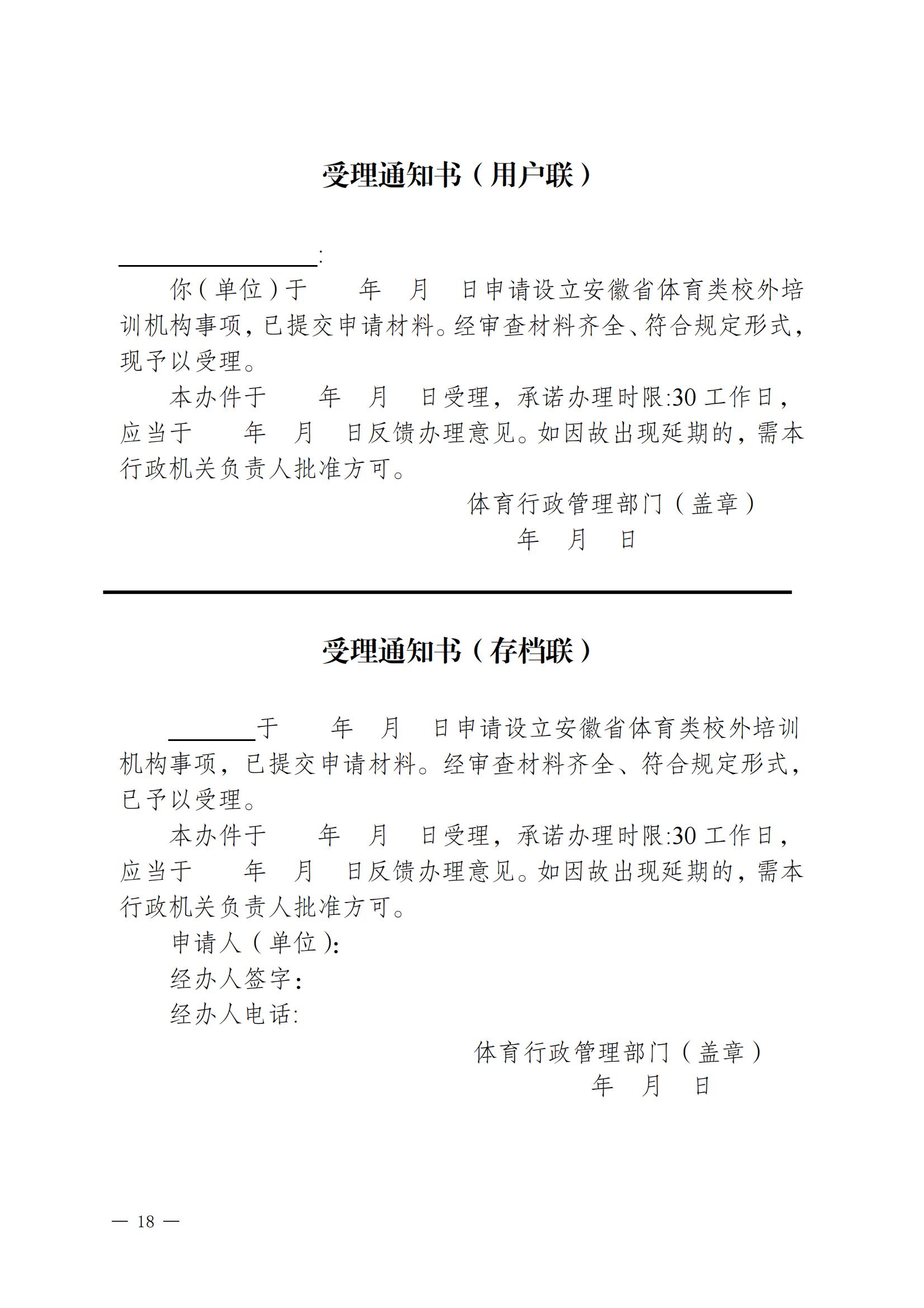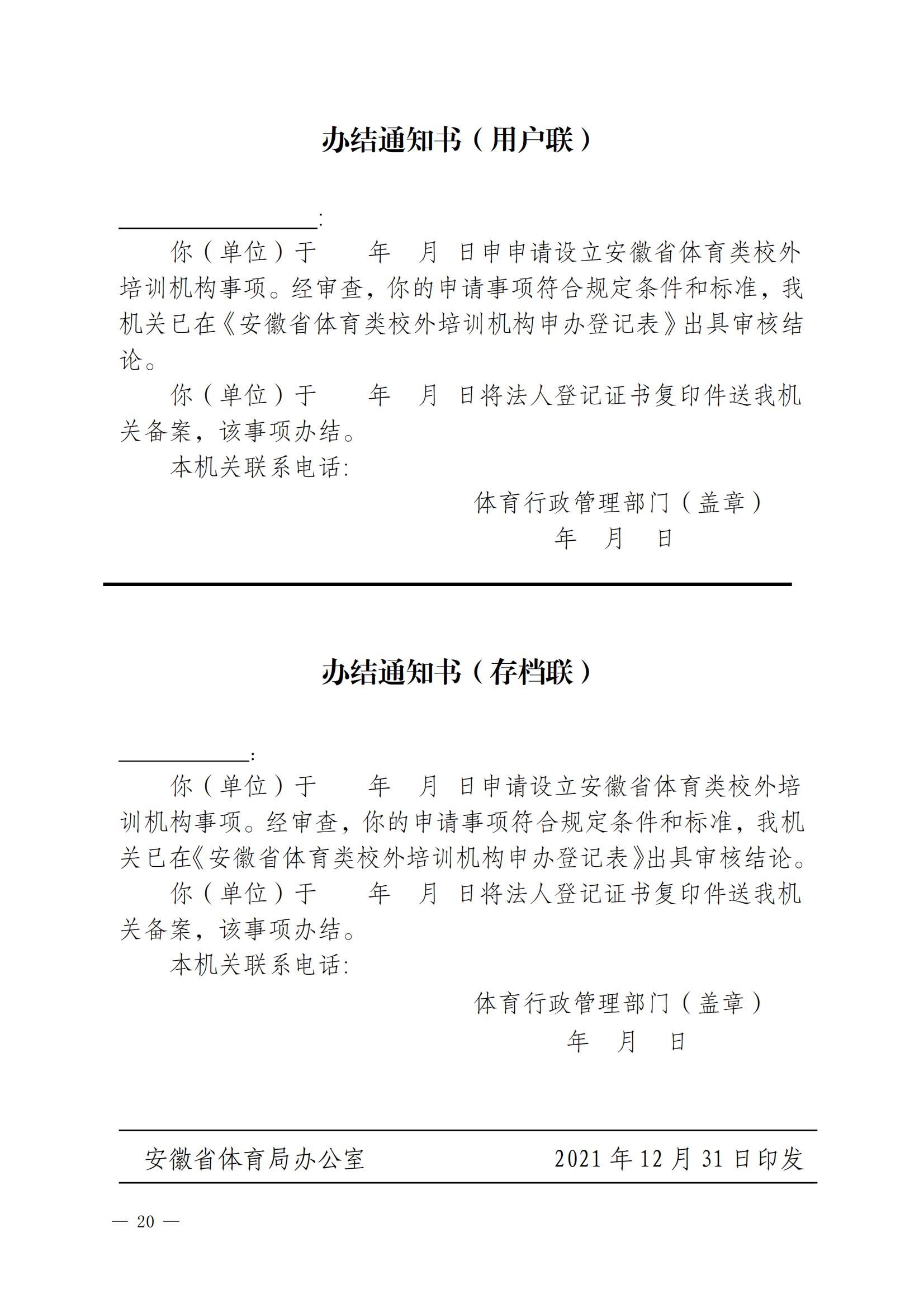 关于印发 《安徽省体育类校外培训机构设置标准(试 行)》《安徽省体育类校外培训机构审批 流程(试行)》的通知